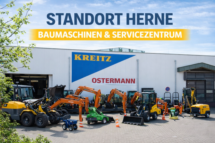 Der Standort Kreitz & Ostermann in Herne ist Hauptsitz unseres Unternehmens und zentraler Ansprechpartner für Bauunternehmen, Handwerksbetriebe und Kommunen im Ruhrgebiet. Seit über 50 Jahren stehen wir für den Verkauf und die Vermietung von Baumaschinen, Baugeräten sowie professionelle Service- und Reparaturleistungen.
